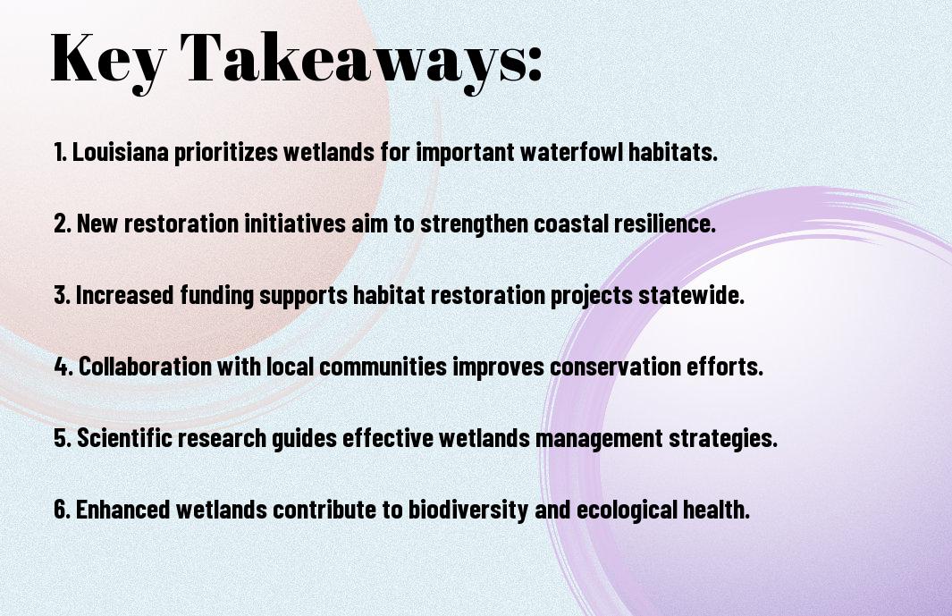 - Louisiana is implementing new initiatives to restore coastal wetlands, which are vital for sustaining waterfowl habitats.
